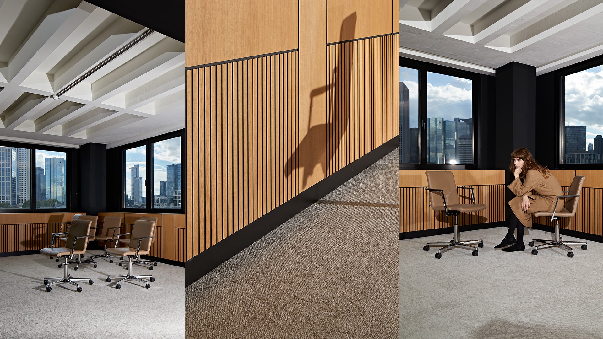 Die Fenster wurden von innen optisch zu Fensterbändern zusammengezogen, die einen atemberaubenden Ausblick auf die Skyline erlauben. Von außen wurden die Fassadenprofile dunkel foliert. Entstanden sind hochwertige Büroflächen, die mit neuer Technik ausgestattet, so manchen Neubau um Klassen hinter sich lassen.
