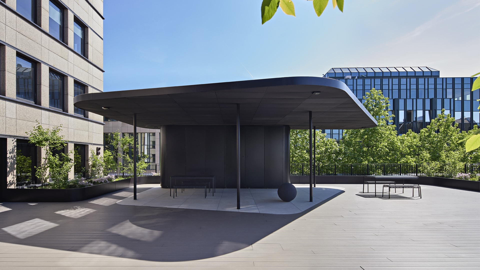 Als Teil des Konferenzbereichs ist eine Terrasse mit kleinem Tee-Pavillion und Begrünung umgestaltet worden. Eine kleine Oase inmitten der Stadt.