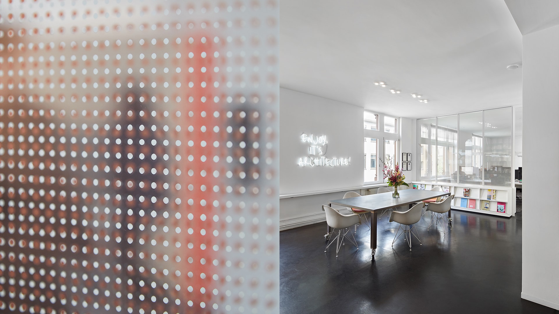 Der Umbau unseres Büros in der Frankfurter Innenstadt hat uns nicht nur ermöglicht, unsere Fähigkeiten im Bereich des Bestandsbaus weiterzuentwickeln, sondern auch unsere Leidenschaft für kreatives Design und Innovation auszuleben.