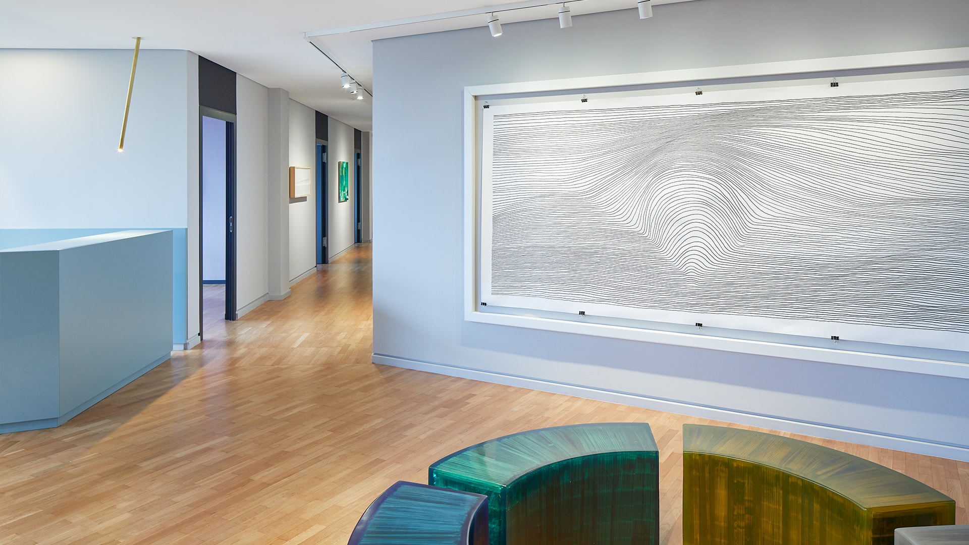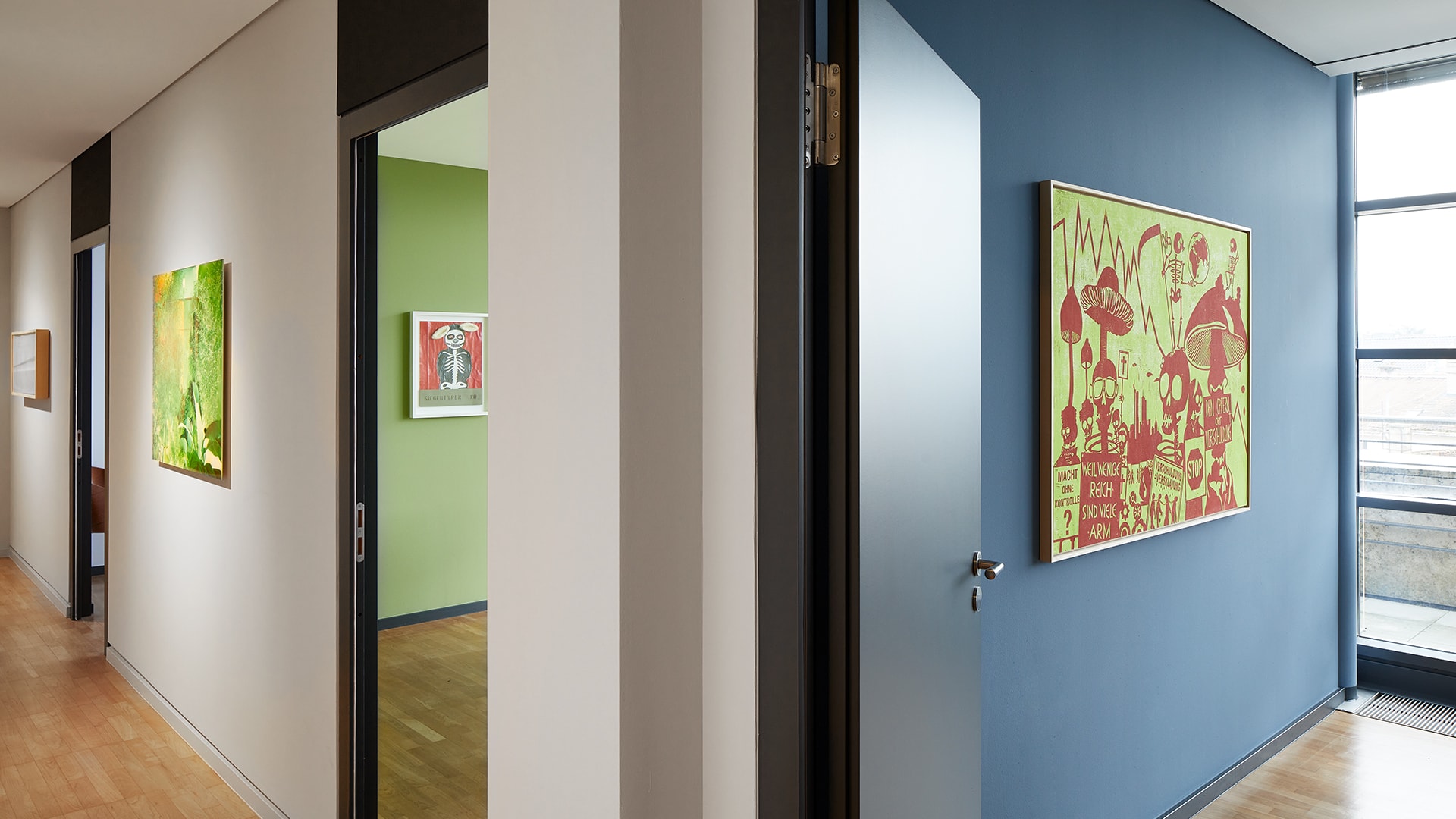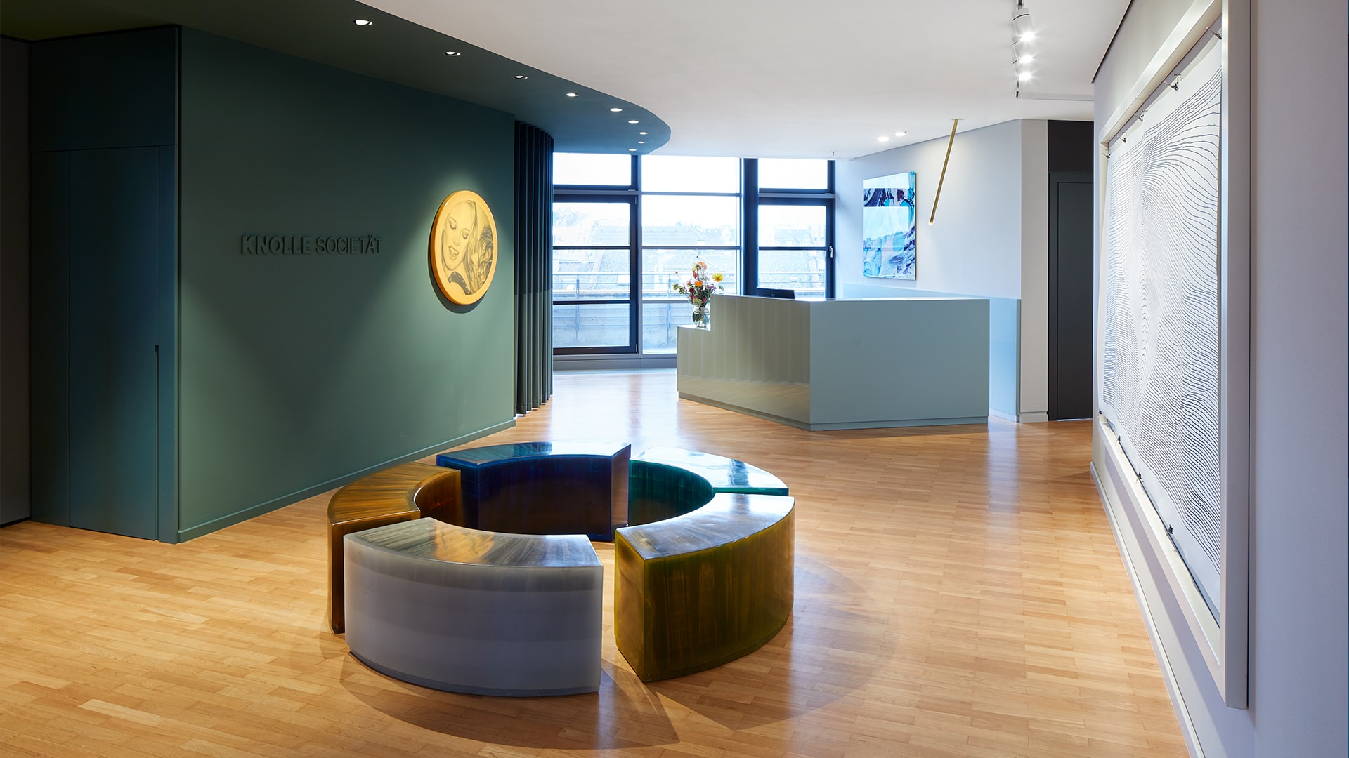 Die Kunstsammlung der Kanzlei mit Schwerpunkt auf ‚Moderner Kunst‘ war bereits im Rahmen der Initiative „Kunstprivat!“ als teilnehmendes Unternehmen für die Öffentlichkeit zugänglich. Durch die Präsentation der Kunstwerke an neuen Standorten und der Licht- und Farbgebung, wurde jedem Raum sein eigener Auftritt verliehen und auch eine optische Trennung der verschiedenen Bürobereiche geschaffen.