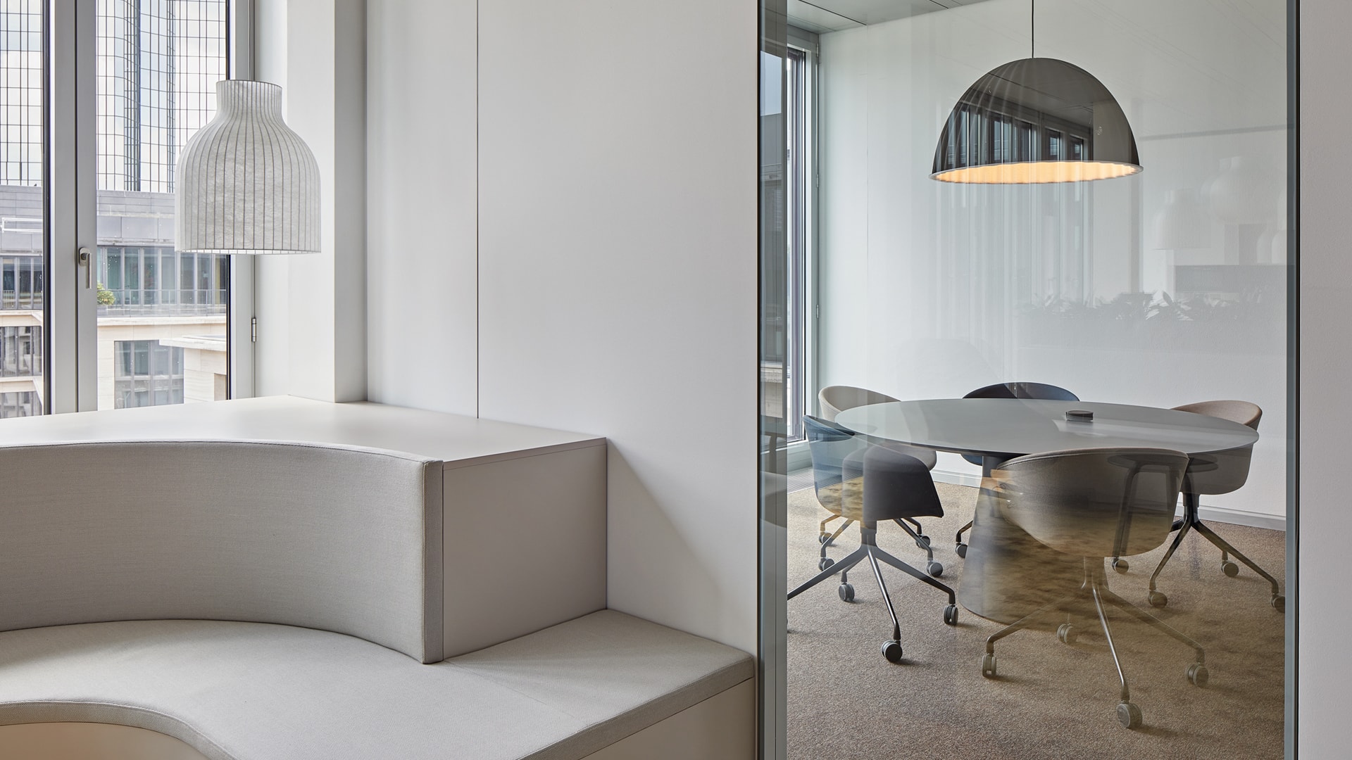 Meetingräume mit den Namen Zandvoort, Ameland, Scheveningen und Farben und Materialien, die an Dünen erinnern. Statt Strandkörben finden sich hier jedoch flexible Arbeitslandschaften. Wir wurden von einer führenden Vermögensverwaltung beauftragt, ein Ausbaukonzept zu entwickeln, dass das fortschrittliche niederländische Büro- und Arbeitsmodell in einem klassischen Bürostandort integriert, ohne dabei als Fremdkörper zu wirken. Unser Hauptziel bestand darin, das räumliche Potenzial des Hauptgebäudes zu nutzen und die Mittelzonen optimal zu gestalten.