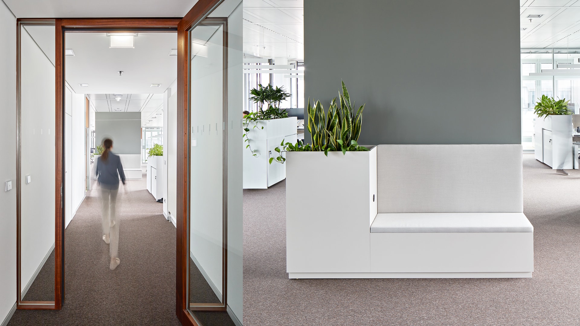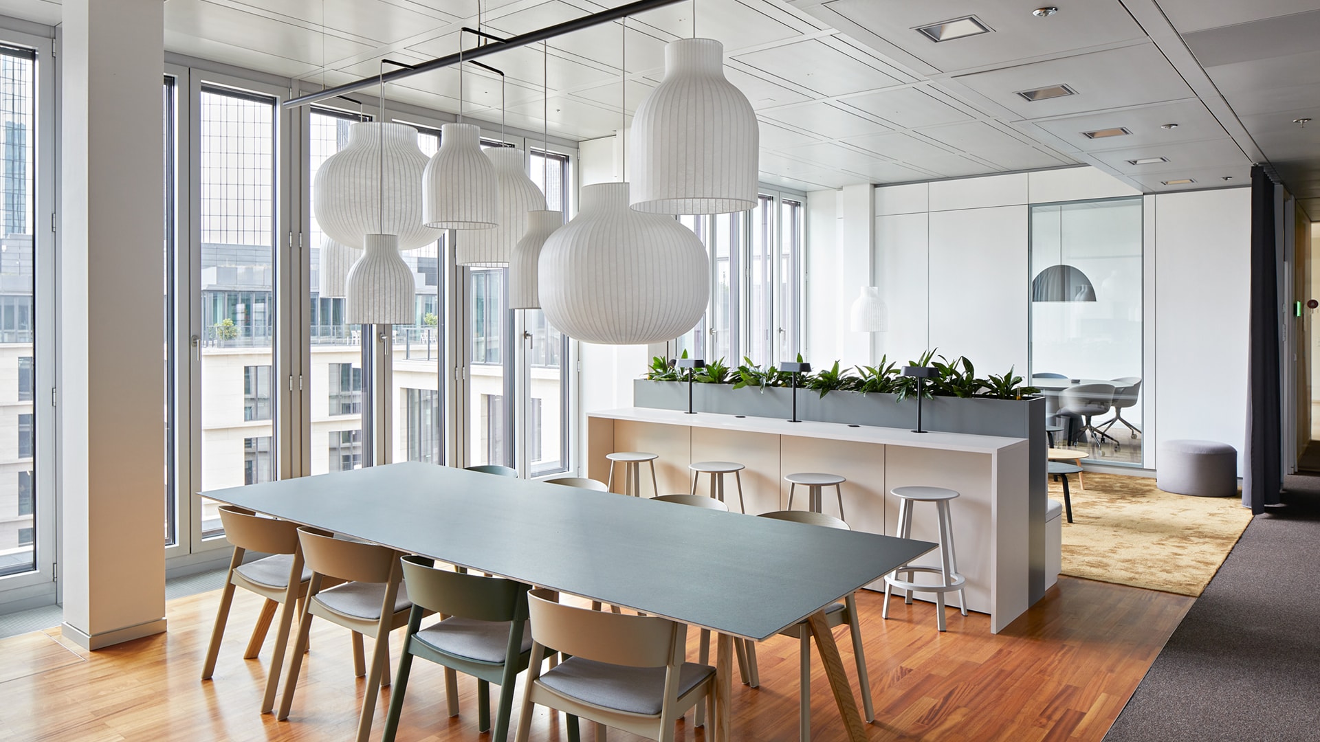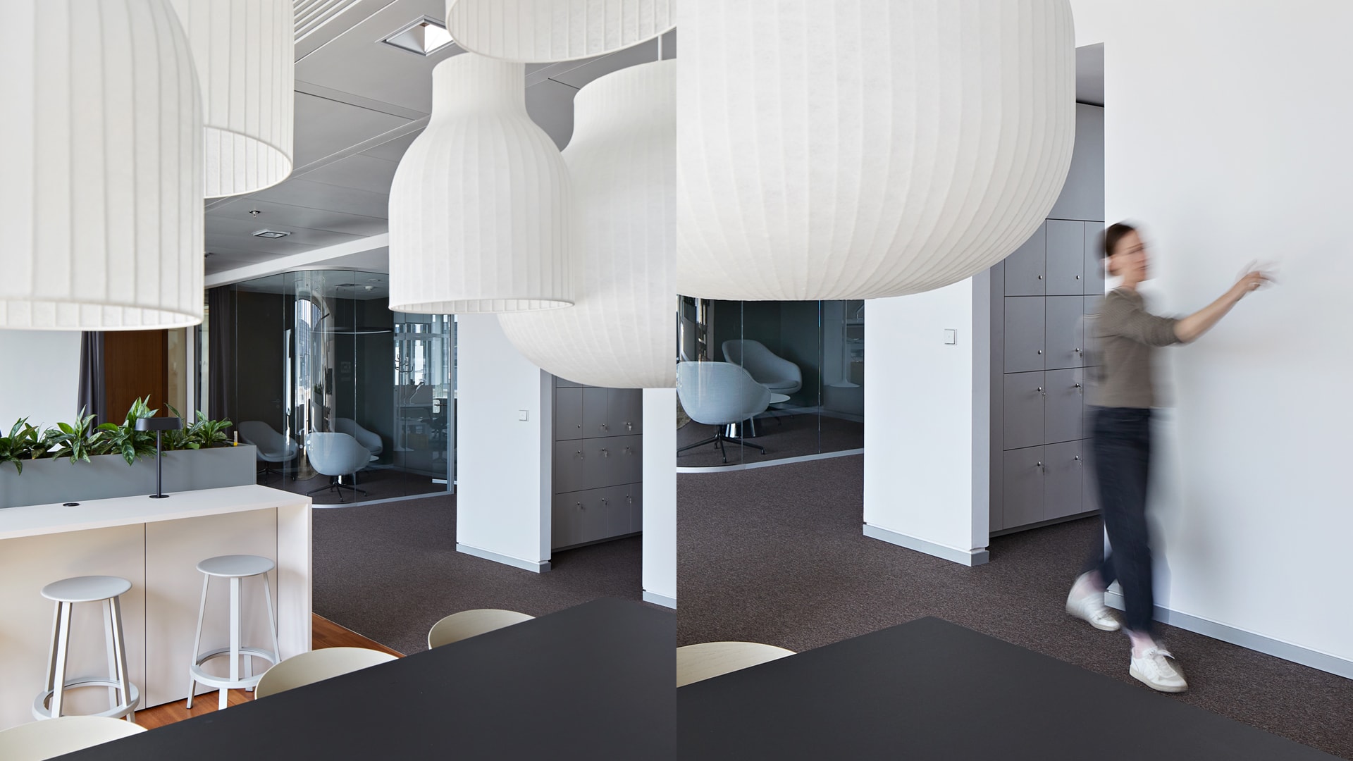Das neue Büro wurde vor allem in seiner Struktur progressiv gestaltet. Entstanden ist ein agiles und offenes Arbeitsplatzkonzept, das eine ausgewogene Mischung aus Großraum und Think Tanks, Kommunikationszonen und Besprechungsräumen bietet. Statt eines klassischen Empfangsbereichs erwartet Besucher nun eine geräumige und offene Teeküche mit einer Arbeitslounge, die sowohl Kunden als auch Mitarbeitern als Treffpunkt dient.