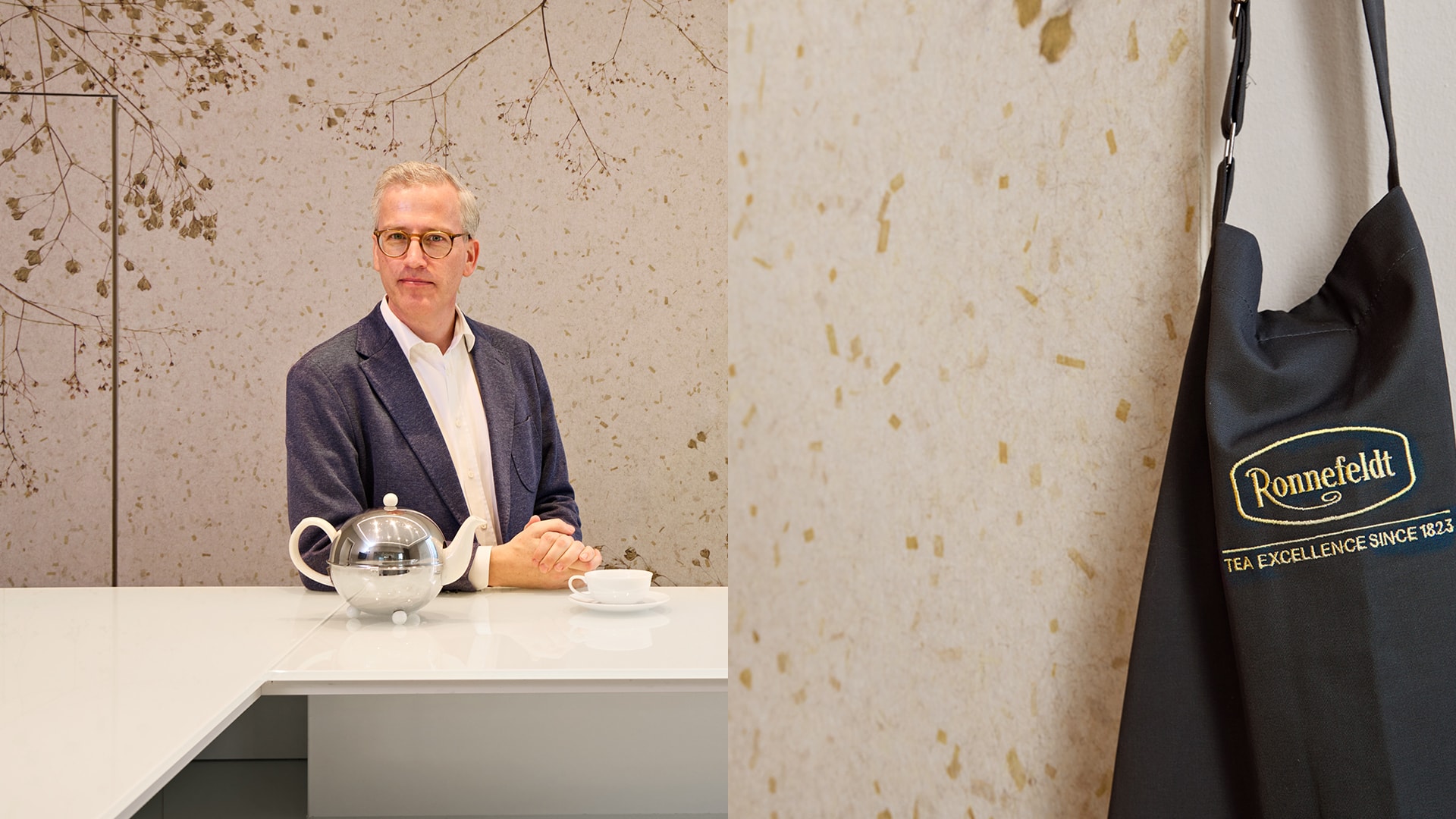 Besucher werden im hellen Bürofoyer persönlich empfangen und tauchen sogleich in die Welt von Ronnefeldt ein. Eine Markenwand entlang des Lounge-Bereiches gewährt Einblicke in die Geschichte und die 200-jährige Erfahrung der Frankfurter Tee-Marke.