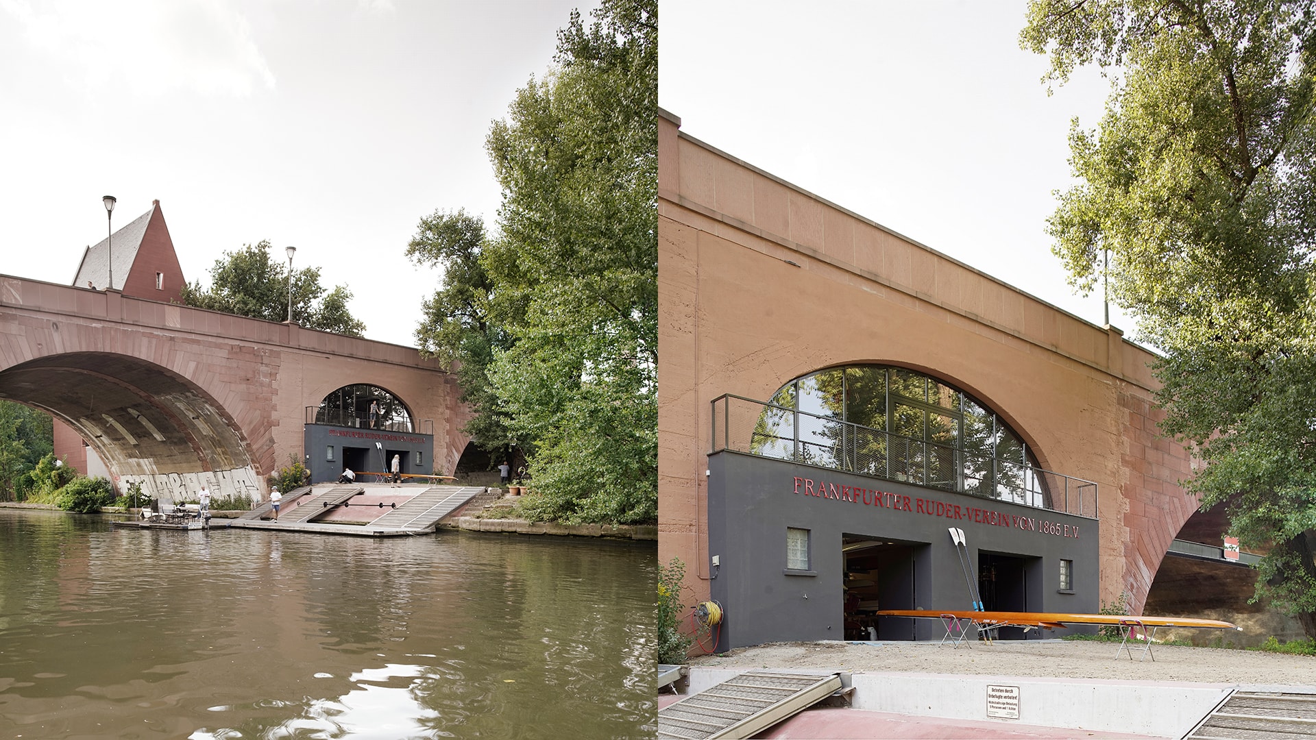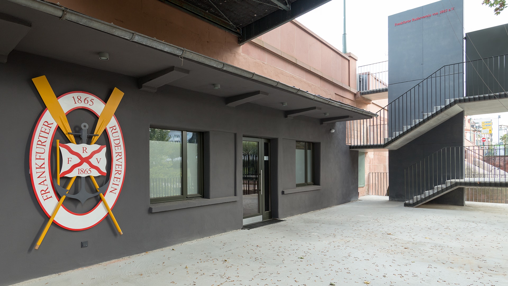 Das Bootshaus des Frankfurter Rudervereins von 1865 – der älteste seiner Art im deutschen Binnenland – befindet sich bereits seit 1871 auf der Maininsel. Von mehreren Hochwassern gezeichnet und baulich in die Jahre gekommen, kam der Verein mit der Bitte auf uns zu, ein Modernisierungskonzept zu entwickeln, welches dem Ruderverein einen frischen Look verleihen würde. Durch das hohe Engagement der Vereinsmitglieder, die neben jahrelangem Sparen auch tatkräftig mit Eigenleistung das Bauvorhaben unterstützen, konnten wir mit minimalem Budget ein maximales Ergebnis erzielen.