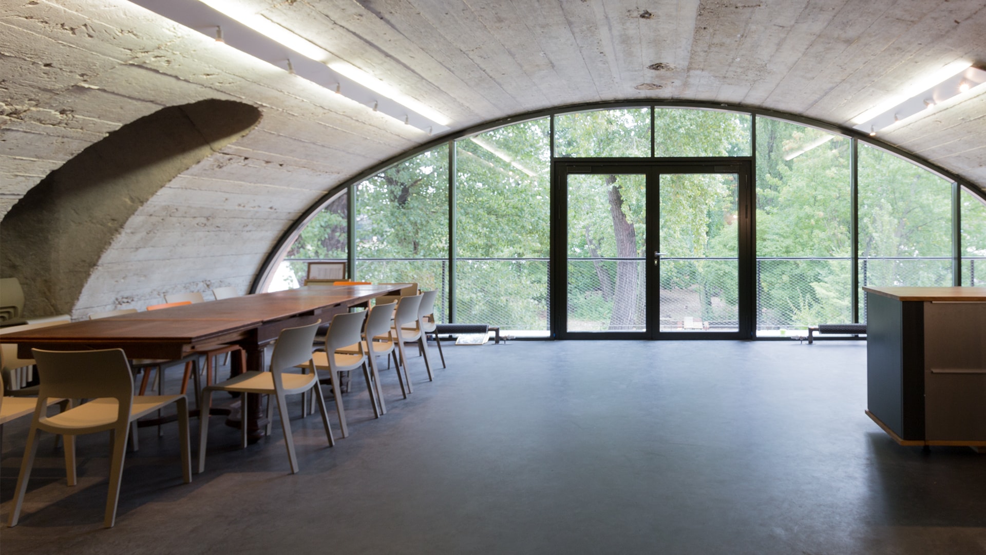 Nach einer völligen Entkernung konnten der Boots- und Vereinsraum neu strukturiert, der Zugang von der Brücke und die beiden Fassaden unter Denkmalschutzauflagen überarbeitet werden. Denkmalschutzrelevante Maßnahmen waren vor allem die Neustrukturierung der Treppenerschließung, die den Brückenbogen wieder freigestellt und das ursprüngliche Brückenbild wieder hergestellt hat.
