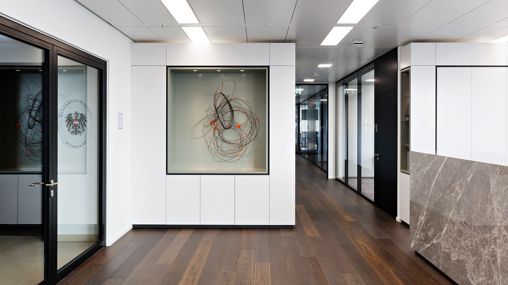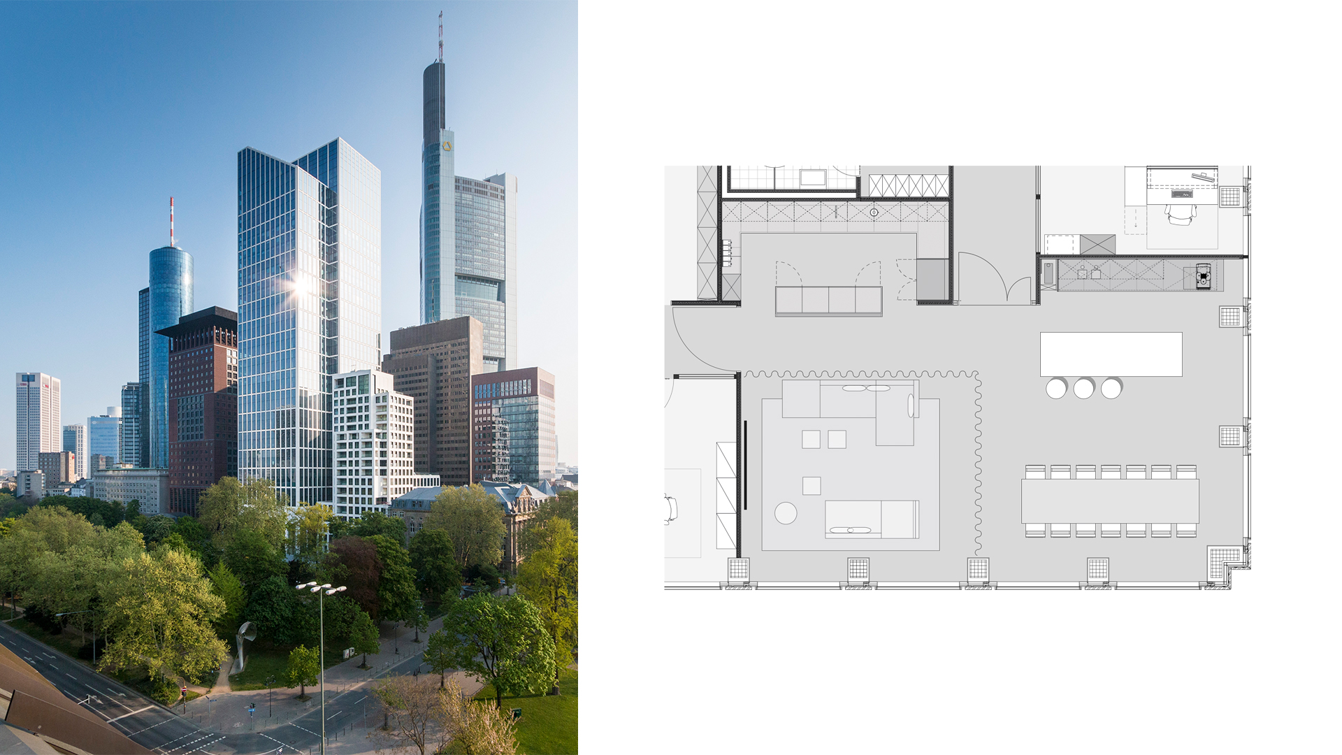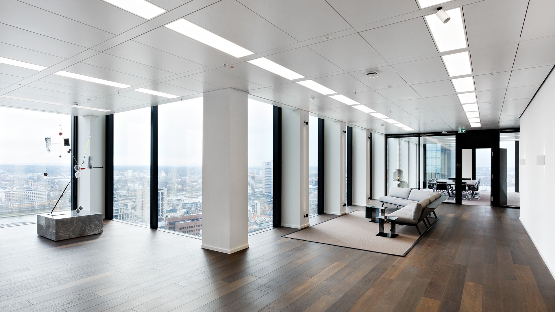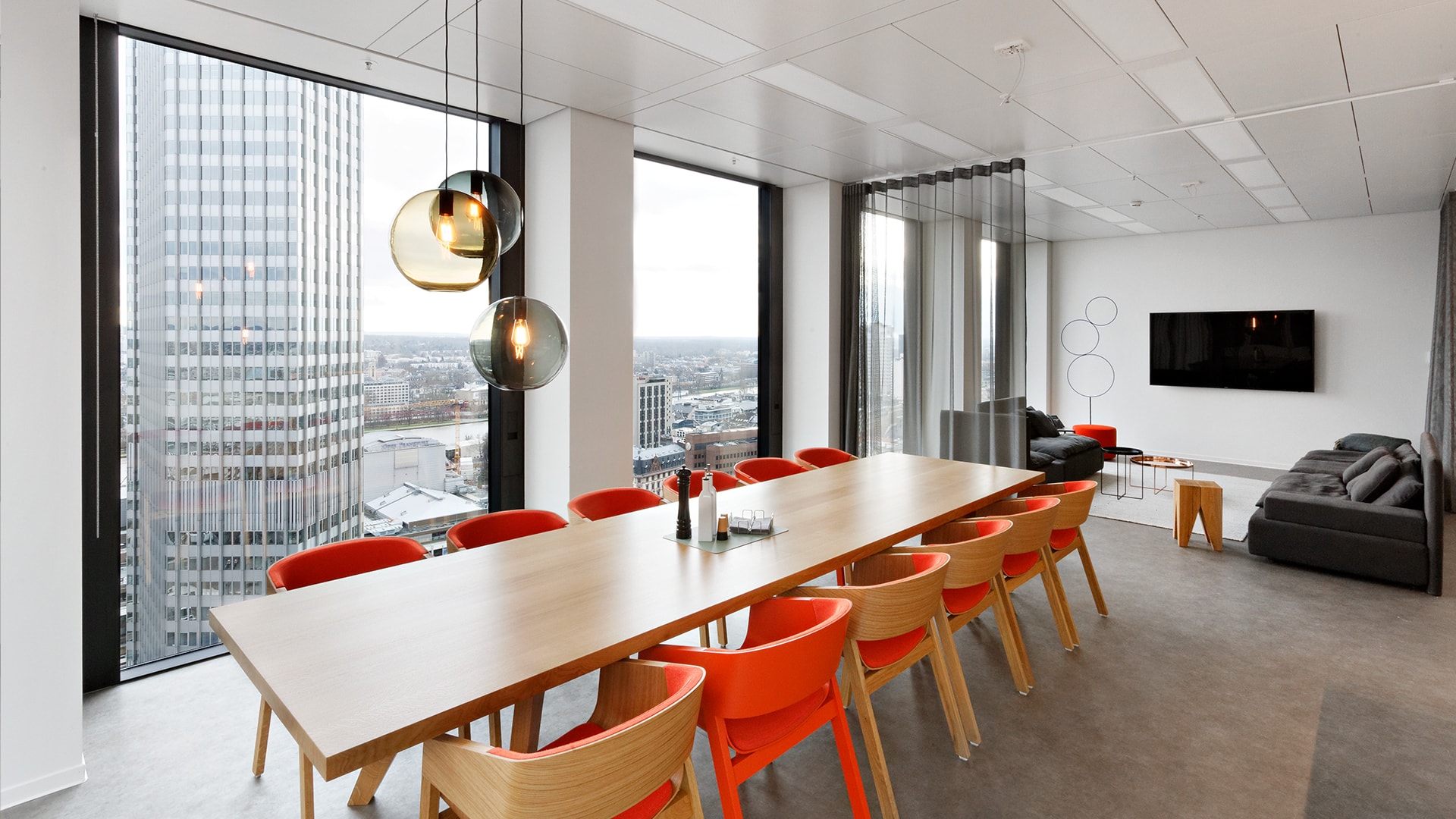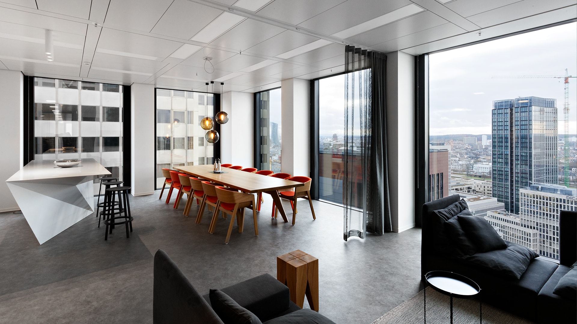Ein Auszeitraum über den Dächern der Stadt mitten im Bankenviertel. Wir begleiteten eine renommierte amerikanische Anwaltskanzlei bei der Neuorientierung ihrer Frankfurter Büroflächen. Nun hat sie ihr neues Headquarter im 19. und 20. Obergeschoss des Taunusturms bezogen.