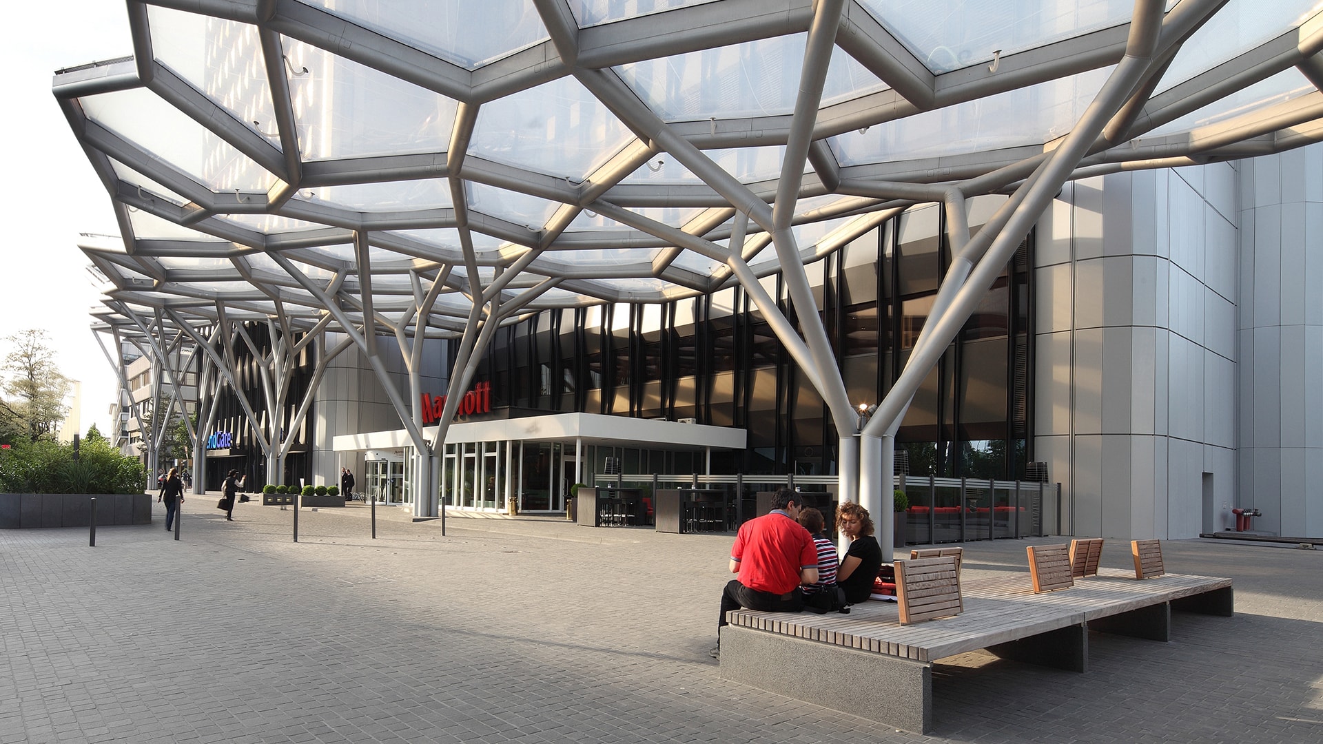 Als Pionier der Frankfurter Skyline ist das WestendGate die Schnittstelle zwischen dynamischer Businesskultur und innerstädtischer Vielfalt. Wir haben die Potentiale des traditionsreichen Wolkenkratzers voll ausgeschöpft und das Gebäude von der Tiefgarage bis zum Dach neu konzipiert. Die umfassende Revitalisierung ließ infolge keine Möglichkeiten zur Optimierung ungenutzt: beginnend bei der markanten Neugestaltung der Eingangssituation über die Fassade – beide in Kooperation mit a3lab/Asterios Agkathidis optisch und energetisch aufgewertet – bis hin zum hochwertigen Innenausbau der inzwischen wieder vollständig belegten Mietetagen. Den umliegenden Bäumen in ihrer organischen Struktur nachempfunden, schafft eine neue, skulpturale Überdachung den prägnanten Übergang des 160 Meter hohen Gebäudes in den Stadtraum, was die Inszenierung des Eingangs und die Neugestaltung des Foyers am eindrucksvollsten vermitteln.